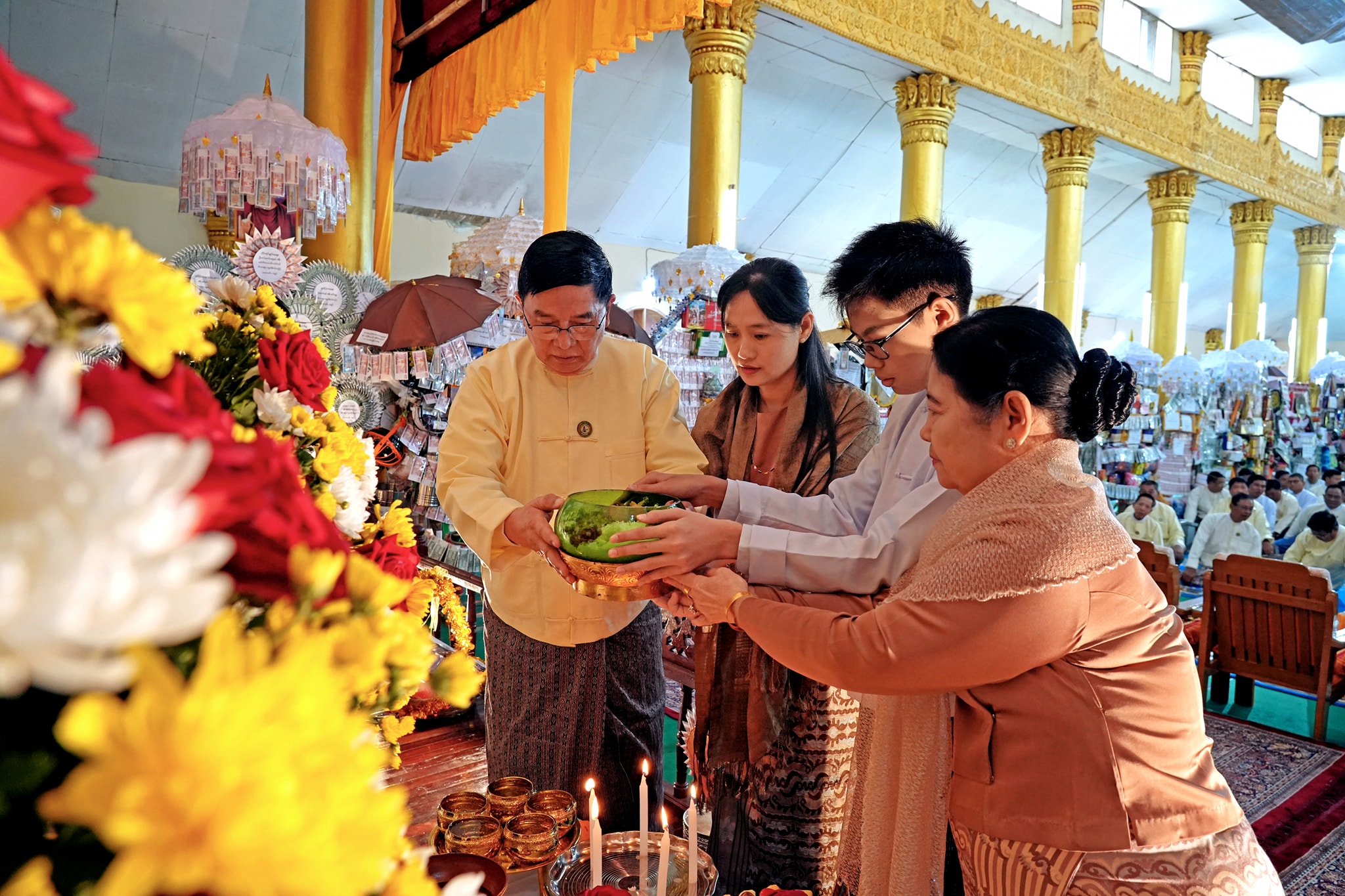 ထို့နောက် မကွေးတိုင်းဒေသကြီးအစိုးရအဖွဲ့ ဝန်ကြီးချုပ် ဦးတင့်လွင်နှင့် တာဝန်ရှိ အကြီးအကဲ များက သံဃာတော်အရှင်သူမြတ်များထံ ကထိန်လျာသင်္ကန်း ၊ ကထိန်အခြံအရံ ပဒေသာပင်များနှင့် လှူဖွယ်ပစ္စည်းများကို ဆက်ကပ်လှူဒါန်းခဲ့သည်။