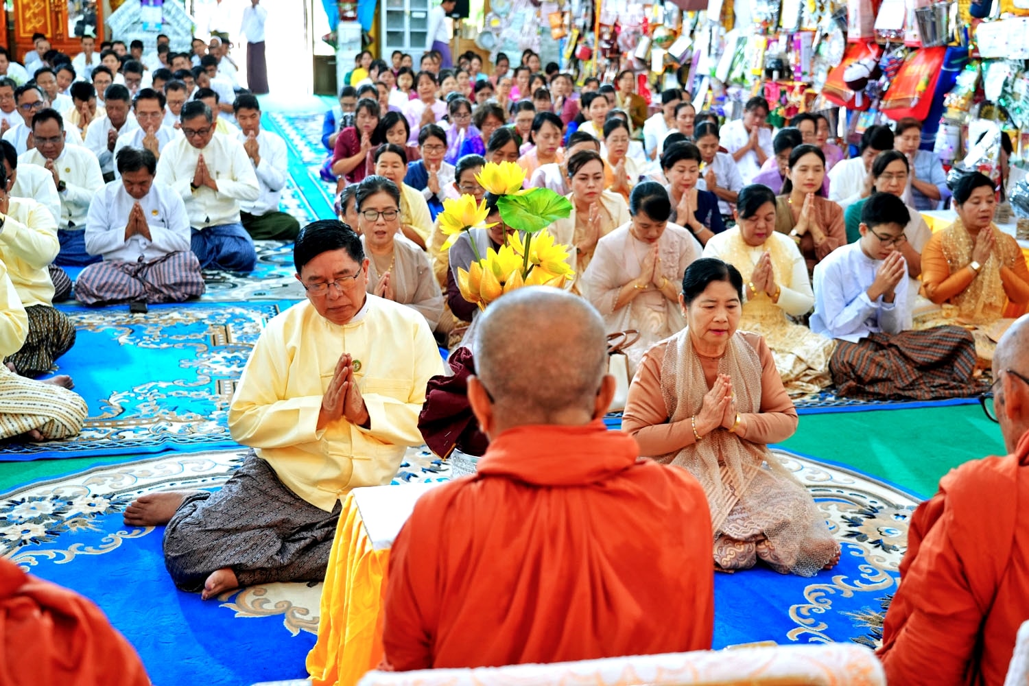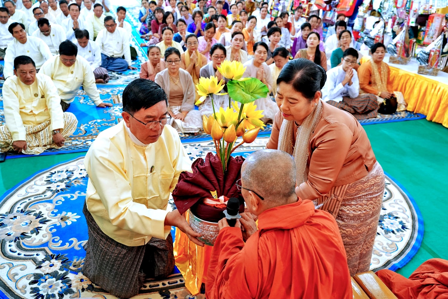 ဆက်လက်ပြီး မကွေးမြို့၊ မဟာဓမ္မိကာရာမကျောင်းတိုက် ပဓာနနာယက ဘဒ္ဒန္တဥတ္တရ (အဂ္ဂမဟာပဏ္ဍိတ)ထံမှ အနုမောဒနာတရား နာကြားပြီး လှူဒါန်းမှု အစုစုအတွက် ရေစက်သွန်းချ အမျှအတန်းများ ပေးဝေကာ အခမ်းအနားကို ဗုဒ္ဓသာသနံ စိရံတိဌတု သုံးကြိမ်ရွတ်ဆိုဆုတောင်းကာ အခမ်းအနားကို ရုပ်သိမ်းခဲ့ကြောင်းနှင့် ပင့်သံဃာအရှင်သူမြတ်တို့အား နေ့ဆွမ်း ဆက်ကပ်လှူဒါန်း ခဲ့ကြောင်း သိရသည်။