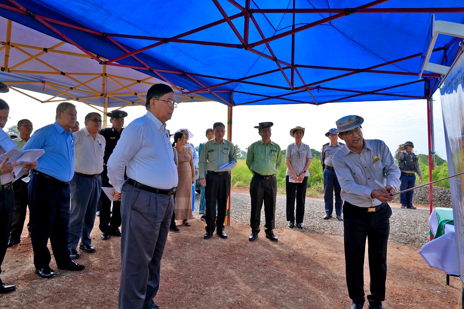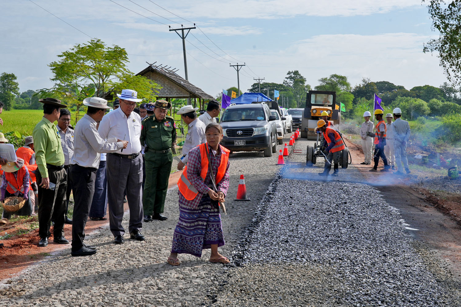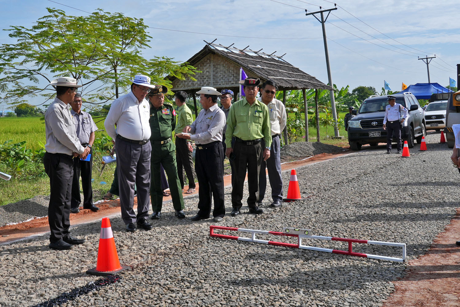 မကွေးတိုင်းဒေသကြီး၀န်ကြီးချုပ် ဦးတင့်လွင် နို၀င်ဘာလ ၈ ရက် ယနေ့နံနက်ပိုင်းက ဆောက်လုပ်ရေးဝန်ကြီးဌာန ၊ လမ်းဦးစီးဌာန ၊ ကြီးကြပ်ရေးအဖွဲ့ (မကွေးတိုင်းဒေသကြီး)မှ မင်းဘူးမြို့နယ်အတွင်းရှိ ထနောင်းတော-အိုင်းမလမ်း(တိုင်းဒေသကြီးလမ်း) အား(မိုင် ၀/၀ - ၁/၀ အထိ)(၁/၀မိုင်) နှင့် (မိုင်၁/၆ - ၂/၂အထိ) (၀/၄မိုင်) စုစုပေါင်း (၁/၄) မိုင်အား (၁၂ပေ) အကျယ် ကတ္တရာထပ်ပိုးလွှာခင်းခြင်းလုပ်ငန်း ကြည့်ရှုစစ်ဆေးသည်။