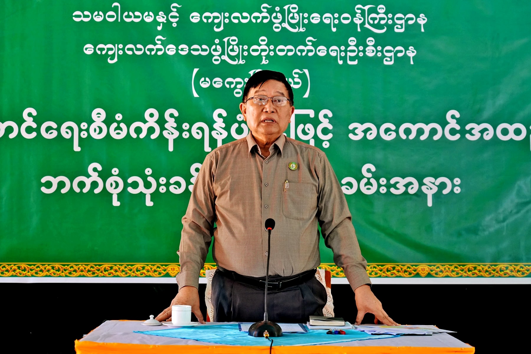 ဆက်လက်ပြီး ဖွင့်ပွဲအထိမ်းအမှတ် အခမ်းအနားကို ဘက်စုံသုံးခန်းမ၌ ကျင်းပရာ တိုင်းဒေသကြီးဝန်ကြီးချုပ် ဦးတင့်လွင်က အမှာစကားပြောကြားရာတွင် နိုင်ငံတော်အစိုးရအနေဖြင့် ကျေးလက်နေပြည်သူများရဲ့ မြို့ပြနဲ့ ကျေးလက်ကွာဟမှု ကျဉ်းမြောင်းလာစေရန်၊ အလုပ်အကိုင် အခွင့်အလမ်းများ ဖန်တီးပေးရန်၊ မိသားစုဝင်ငွေတိုးပွားလာပြီး တပိုင်တနိုင် စိုက်ပျိုးမွေးမြူရေး လုပ်ငန်းများလုပ်ကိုင်လာနိုင်စေရန်၊ အသေးစားစက်မှုလက်မှုလုပ်ငန်းများ ပေါ်ထွန်းလာစေရန်၊ ကျေးရွာများ အမြန်ခေတ်မီဖွံ့ဖြိုးတိုးတက်လာစေရန် စီမံကိန်းများချမှတ်ဆောင်ရွက်လျက်ရှိ ပါကြောင်း၊ ဒီကနေ့ဖွင့်လှစ်ပေးလိုက်တဲ့ ဘက်စုံသုံးခန်းမအပါအဝင် ကဏ္ဍအလိုက် ဆောင်ရွက်ပေး ထားတဲ့ ဖွံ့ဖြိုးရေး လုပ်ငန်းများ ရေရှည်တည်တံ့စေရန်အတွက် ကျေးရွာသူကျေးရွာသားများ အားလုံး ပူးပေါင်း ဆောင်ရွက် သွားကြရန်လိုအပ်ကြောင်း ပြောကြားသည်။