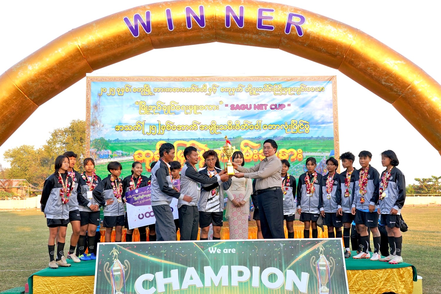 မကွေးတိုင်းဒေသကြီး၊ မင်းဘူးခရိုင်၊ မင်းဘူး(စကု)မြို့နယ်၊ စကုမြို့၌ စိတ်ဓာတ်၊ စည်းကမ်း ပြည့်ဝသော အနာဂါတ်လူငယ် အားကစားသမားကောင်းများ ပေါ်ထွန်းလာစေရန် ရည်ရွယ်၍ စကုမြို့ အားကစားကော်မတီနှင့် Sagu Net တို့ ပူးပေါင်းကျင်းပသော ၂၀၂၅ ခုနှစ် မြို့အုပ်ချုပ်ရေးမှူးဖလား (Sagu Net Cap)အသက်(၂၅)နှစ်နှင့်အောက် အမျိုးသမီးဖိတ်ခေါ် ဘောလုံးပြိုင်ပွဲ ဗိုလ်လုပွဲနှင့် ဆုပေးပွဲ အခမ်းအနားကို ဒီဇင်ဘာ ၇ ရက် ညနေ ၃ နာရီက စကုမြို့မအားကစားကွင်း၌ ကျင်းပရာ တိုင်းဒေသကြီးဝန်ကြီးချုပ် ဦးတင့်လွင် တက်ရောက်ကြည့်ရှုအားပေးကာ ဂုဏ်ပြုဆုများ ချီးမြှင့် ပေးခဲ့သည်။