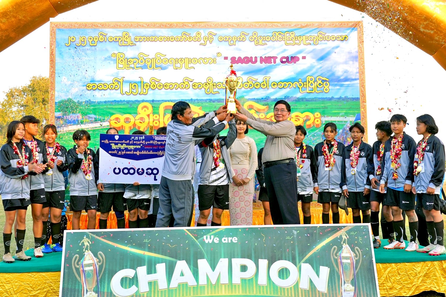 စကုမြို့ အားကစားကော်မတီနှင့် Sagu Net တို့ ပူးပေါင်းကျင်းပသော ၂၀၂၅ ခုနှစ်၊ မြို့အုပ်ချုပ်ရေးမှူးဖလား (Sagu Net Cap) အသက်(၂၅)နှစ်နှင့် အောက် အမျိုးသမီးဖိတ်ခေါ် ဘောလုံးပြိုင်ပွဲတွင် ဘုရားရွာ၊ စကုအမှတ်(၃)၊ အ.ထ.က(စကု)၊ အ.ထ.က(ခွဲ)ရေပုတ်နှင့် အ.ထ.က (ခွဲ)ကျွဲတဲ အသင်း(၅)သင်းတို့က ဝင်ရောက်ယှဉ်ပြိုင်ခဲ့ကြောင်း၊ အဆိုပါပြိုင်ပွဲတွင် အုပ်စုပတ်လည် ပွဲစဉ်များကို ၂၀၂၅ ခုနှစ်၊ နိုဝင်ဘာလ ၂၆ ရက်မှ ဒီဇင်ဘာလ ၅ ရက်နေ့အထိ ကျင်းပပြုလုပ်ခဲ့ပြီး ဗိုလ်လုပွဲစဉ်အဖြစ် ဒီဇင်ဘာလ ၇ ရက်နေ့က စကုအမှတ်(၃) အသင်းနှင့် အ.ထ.က(စကု) အသင်းတို့ အကြိတ်အနယ် ယှဉ်ပြိုင်ကစားကြရာ စကုအမှတ်(၃) အသင်းက အ.ထ.က(စကု)အသင်းကို (၄ - ဝ) ဂိုးဖြင့် အနိုင်ရ ဗိုလ်စွဲခဲ့သည်။