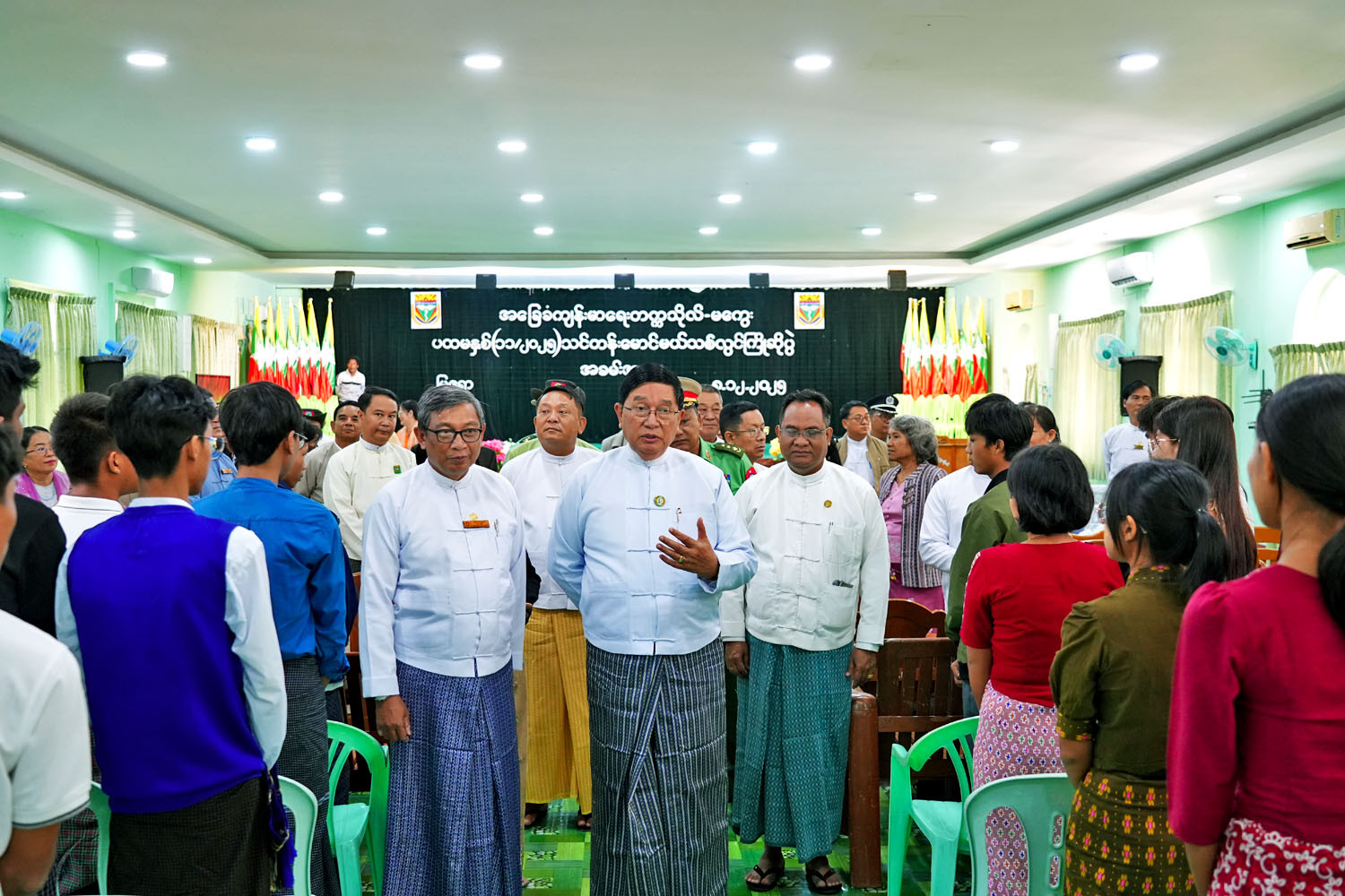 ဦးစွာ မောင်မယ်သစ်လွင် ကြိုဆိုပွဲ အခမ်းအနားတွင် တိုင်းဒေသကြီးဝန်ကြီးချုပ် ဦးတင့်လွင်က နိုင်ငံတစ်နိုင်ငံ ဖွံ့ဖြိုးတိုးတက်မှုကို တိုင်းတာတဲ့နေရာမှာ အဲ့ဒီနိုင်ငံရဲ့ ကျန်းမာရေး ဆိုင်ရာ သတ်မှတ် စံချိန်စံညွှန်းတွေကလဲ အရေးကြီးတဲ့ တိုင်းတာသတ်မှတ်မှုတစ်ခုအဖြစ် ပါဝင်တယ် ဆိုတာ အားလုံးသိကြ ရမှာဖြစ်ကြောင်း၊ ကျန်းမာရေးဝန်ကြီးဌာနအနေနဲ့ နိုင်ငံအတွင်း မှီတင်းနေထိုင် ကြတဲ့ တိုင်းရင်းသား ပြည်သူလူထုအပေါင်းကို ကျန်းမာရေးစောင့်ရှောက်မှုများ ဆောင်ရွက်ပေးတဲ့ နေရာမှာ “လူတိုင်း သက်တမ်းစေ့ အသက်ရှည်စွာနေနိုင်ရေးနဲ့ လူတိုင်းရောဂါဘယ ကင်းရှင်း ရေး”တို့ကို ရည်မှန်းချက်များအဖြစ် ထားရှိပြီး အဲဒီရည်မှန်းချက်တွေကို အောင်မြင်စွာ အကောင် အထည်ဖော် ဆောင်ရွက်နိုင်ဖို့ အတွက် “ကျေးလက်ဒေသအောက်ခြေအထိ ကျန်းမာရေး အသိပညာ ပေးခြင်း၊ ရောဂါကာကွယ် တားဆီးခြင်း၊ ရောဂါဖြစ်ပွားလာလျှင် ထိရောက်စွာ ကုသမှုပေးခြင်း” ဆိုတဲ့ နည်းနာ(၃)ရပ်နဲ့ ဆောင်ရွက်နေ တယ်ဆိုတာ အားလုံး အသိဖြစ်ကြောင်း၊ ဒီလို ရည်မှန်းချက်တွေ၊ နည်းနာတွေချမှတ် ဆောင်ရွက်တဲ့ နေရာမှာ သတိထားကြည့်ရင် နိုင်ငံလူဦးရေရဲ့ အများစု (၇၀) ရာခိုင်နှုန်းခန့် နေထိုင်နေတဲ့ ကျေးလက်နေပြည်သူများရဲ့ ကျန်းမာရေးကို တာဝန်ယူရမှာဖြစ်လို့ တာဝန်ကြီးမားလှသလို ဂုဏ်ယူ ဝမ်းမြောက်စရာ ကောင်းလှပါကြောင်း၊ ဒီတက္ကသိုလ်ဟာ တို့နိုင်ငံမှာ တစ်ခုတည်းသော တက္ကသိုလ် ဖြစ်ပြီး တိုင်းဒေသကြီးနဲ့ ပြည်နယ်အားလုံးက တိုင်းရင်းသားအားလုံး ဆုံဆည်းရာ ပြည်ထောင်စု တက္ကသိုလ် ဖြစ်တဲ့အတွက် တစ်ဦးနဲ့ တစ်ဦး စည်းလုံးညီညွတ်စွာ ချစ်ကြည် ရင်းနှီးစွာ ပညာသင်ယူ ကြရမှာဖြစ်ကြောင်း၊ စာတွေ့လက်တွေ့ဘာသာရပ်တွေကို သေသေချာချာ လေ့လာကြိုးစားသင်ယူ ကြဖို့၊ မသိ နားမလည်တာတွေရှိရင်လဲ ဆရာ၊ ဆရာမတွေကို ရင်းရင်းနှီးနှီး တွေ့ဆုံ မေးမြန်းကြဖို့နဲ့ နောင်တစ်ချိန် တိုင်းပြည်တာဝန်တွေ ထမ်းဆောင်ကြတဲ့ အချိန်မှာ အရည်အသွေး၊ အရည်အချင်း ပြည့်ဝတဲ့ ကျန်းမာရေး ဝန်ထမ်းကောင်းတွေဖြစ်အောင် ကြိုးစားကြ စေလိုကြောင်းနှင့် မောင်တို့မယ်တို့ အားလုံးကို မိခင်တက္ကသိုလ်ကြီးနဲ့ စီနီယာ အကိုအမတွေ အားလုံးက ကြိုဆိုကြသလို ဆရာ၊ ဆရာမ များနှင့် တိုင်းဒေသကြီး အစိုးရအဖွဲ့ကလည်း နွေးထွေးစွာ ကြိုဆိုပါကြောင်း စသည်ဖြင့် ပြောကြားသည်။