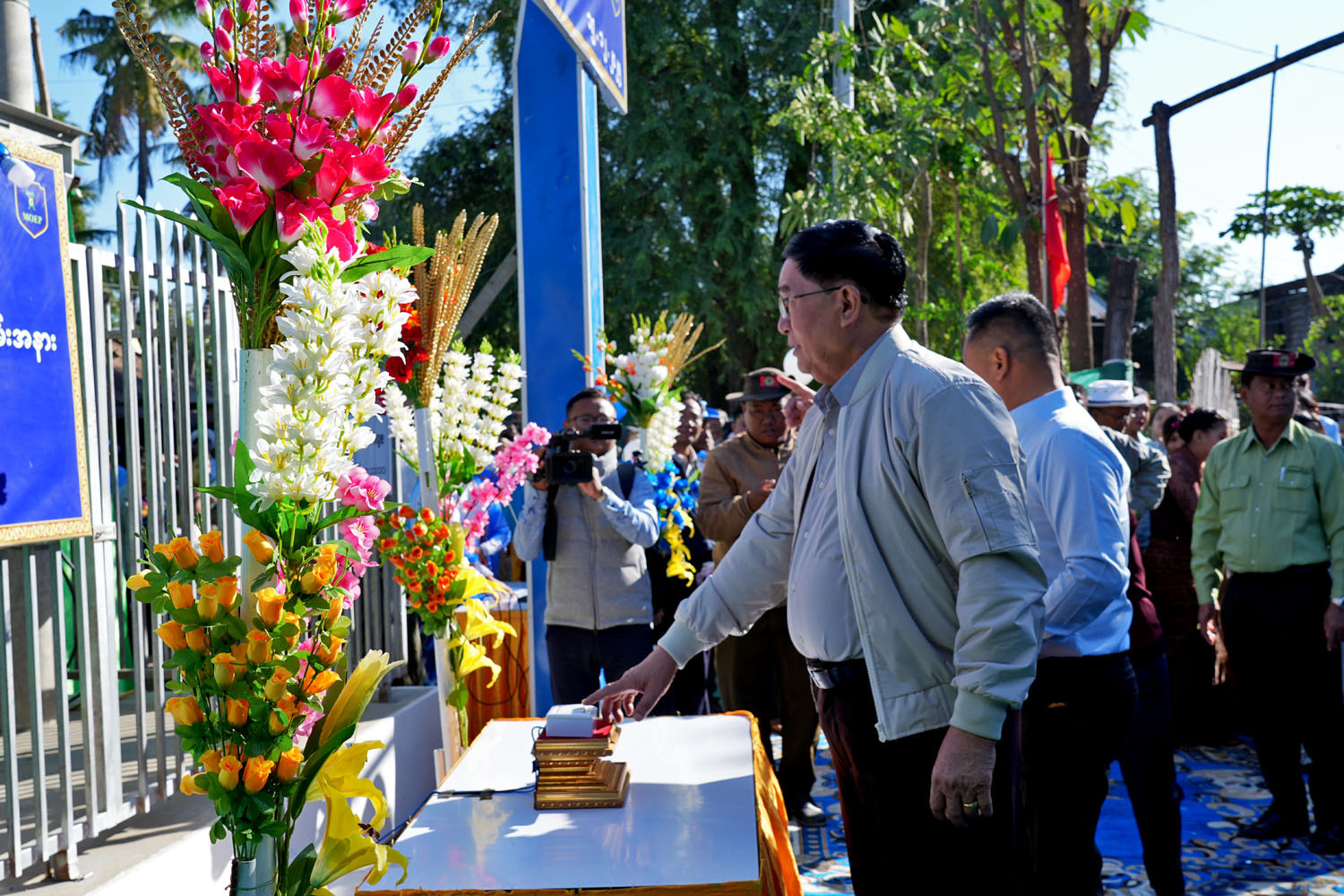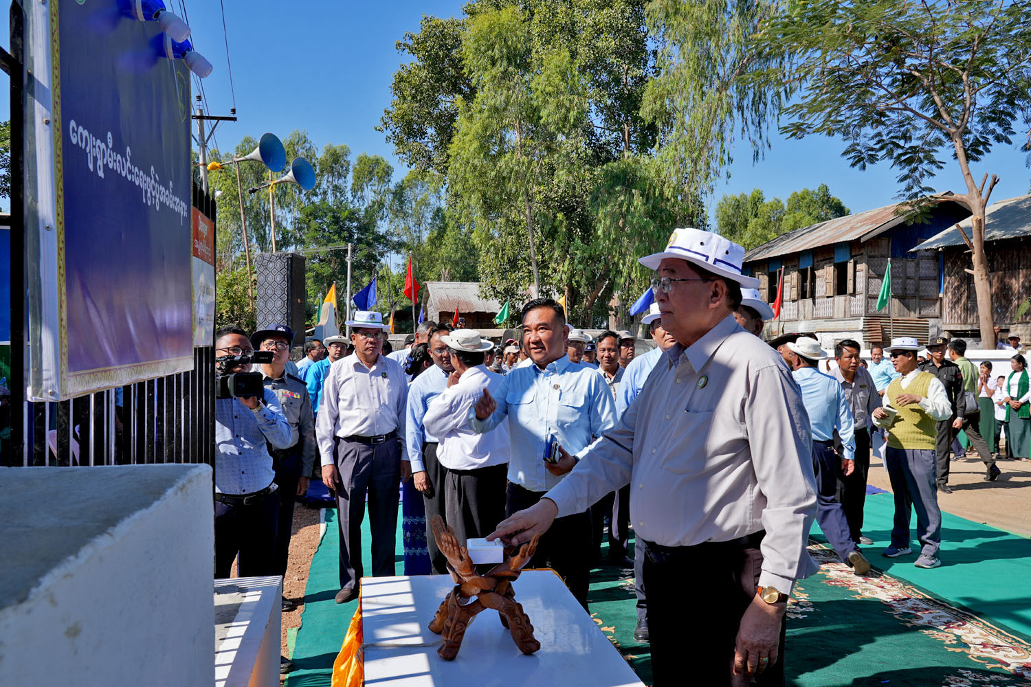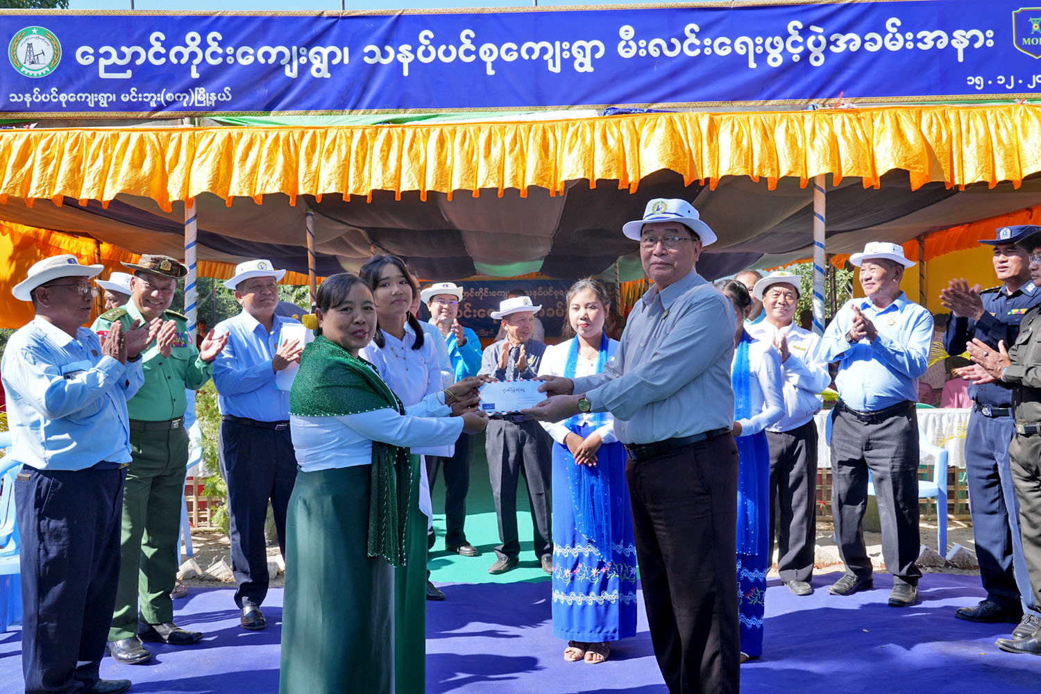 ဆက်လက်ပြီး သနပ်ပင်စုကျေးရွာ အခြေခံပညာအထက်တန်းကျောင်းခွဲ၌ မီးလင်းရေးဖွင့်ပွဲ ဒုတိယပိုင်းကို ကျင်းပရာ တိုင်းဒေသကြီးဝန်ကြီးချုပ်က ဦးတင့်လွင်က အမှာစကားပြောကြားပြီး သယံဇာတရေးရာဝန်ကြီး ဦးစိုင်းမြင့်အေးက ညောင်ကိုင်းကျေးရွာနှင့် သနပ်ပင်စုကျေးရွာတို့၌ လျှပ်စစ်မီးလင်းရေးလုပ်ငန်းများ ဆောင်ရွက်ပေးနိုင်ခဲ့မှုအား ရှင်းလင်းတင်ပြကာ ဒေသခံတစ်ဦးက ကျေးဇူးတင်စကား ပြန်လည်ပြောကြားသည်။