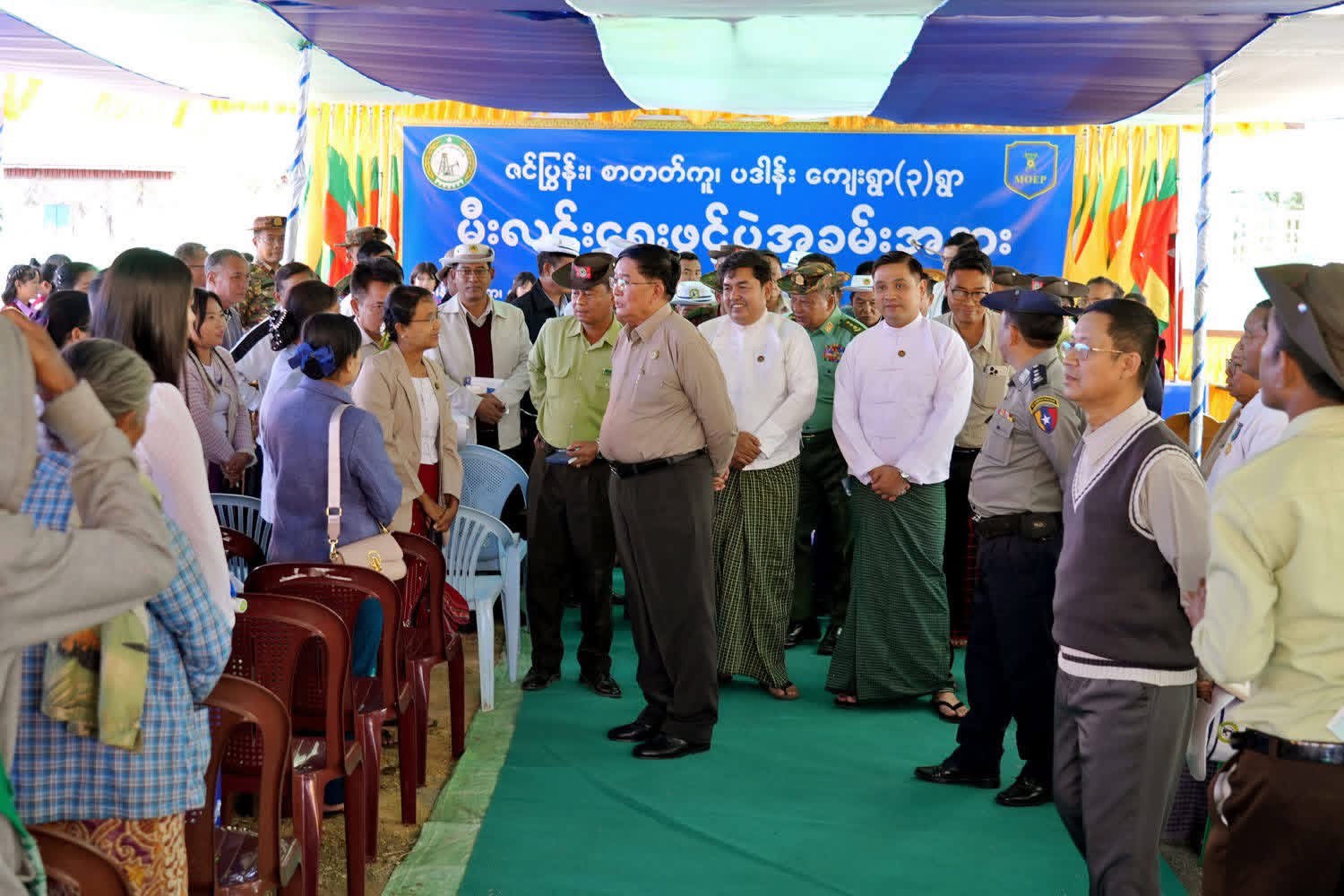 အခမ်းအနားအပြီးတွင် တိုင်းဒေသကြီး၀န်ကြီးချုပ်နင့် တာ၀န်ရှိသူများသည် အဆိုပါကျေးရွာ များသို့ စစ်ဘေးရှောင်ရောက်ရှိကာ အခြေခံပညာကျောင်း တက်ရောက် ပညာသင်ကြား နေသော ကျောင်းသား ကျောင်းသူများအား တွေ့ဆုံ၍ အားပေးစကားများပြောကြားကာ၊ လိုအပ်သည့် ကူညီထောက်ပံ့မှုများ ဆောင်ရွက်ပေးခဲ့ကြောင်း သိရသည်။