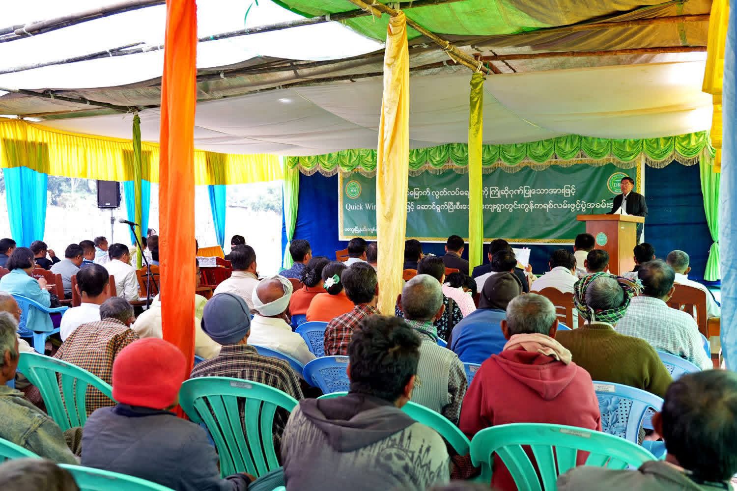 ဆက်လက်၍ ကျေးလက်ဒေသဖွံ့ဖြိုးတိုးတက်ရေးဦးစီးဌာန ရုံးချုပ်(နေပြည်တော်)မှ ဒုတိယ ညွှန်ကြားရေးမှူးချုပ် ဦးမောင်ဝင်း က မကွေးတိုင်းဒေသကြီးအတွင်း Quick Win အစီအစဉ်ဖြင့် လုပ်ငန်းအကောင်အထည်ဖော်ဆောင်ရွက်ခဲ့မှု အခြေအနေများအား ရှင်းလင်းတင်ပြခဲ့ပြီး ကျေးရွာမှ တာဝန်ရှိသူများက ကျေးဇူးတင်စကားနှင့် ကျေးရွာမှ ဒေသဖွံ့ဖြိုးရေး လိုအပ်ချက်များကို ရှင်းလင်း တင်ပြရာ တိုင်းဒေသကြီးဝန်ကြီးချုပ်က ဆက်စပ်ဌာနများနှင့် ပေါင်းစပ် ဖြည့်ဆည်း ဆောင်ရွက်ပေးခဲ့ ကြောင်းနှင့် ကျေးရွာစာသင်ကျောင်းအတွက် အားကစား ပစ္စည်းများကို ပေးအပ်ခဲ့ကြောင်း သိရသည်။