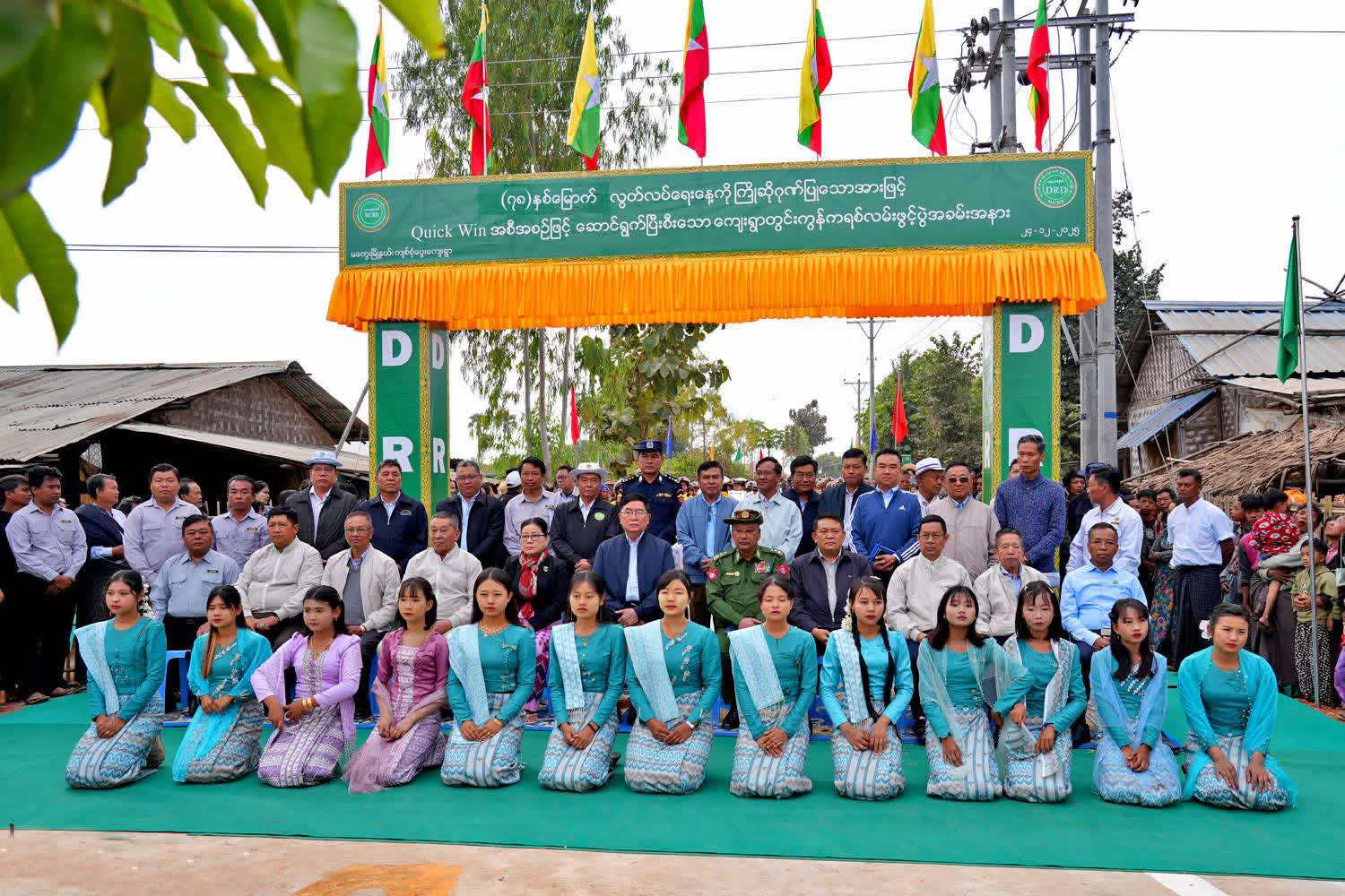 ထို့နောက် တိုင်းဒေသကြီးဝန်ကြီးချုပ်နှင့် တာဝန်ရှိသူများသည် ကွန်ကရစ်လမ်း ဆောင်ရွက် ပြီးစီးမှု အခြေအနေများအား လိုက်လံကြည့်ရှု့စစ်ဆေးခဲ့ပြီး လိုအပ်သည်များ ပေါင်းစပ်ဆောင်ရွက် ပေးသည်။
