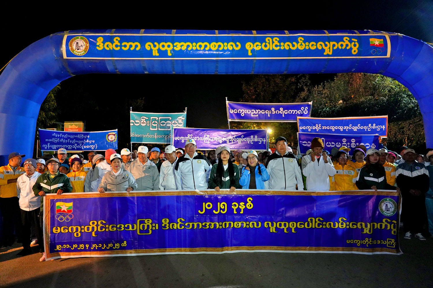တစ်မျိုးသားလုံး ကျန်းမာကြံ့ခိုင်ရေး၊ ပြည်သူလူထု ကျန်းမာကြံ့ခိုင်စေရန်၊ ရောဂါကြိုတင် ကာကွယ်နိုင်ရန်နှင့် သက်တမ်းစေ့နေနိုင်ရန်၊ အမျိုးသားအားကစား အဆင့်အတန်း တိုးတက်မြင့်မား ရေးနှင့် ပြည်သူလူထုပါဝင်သည့် အားစားလှုပ်ရှားမှုများ ပိုမိုဆောင်ရွက်လာနိုင်စေရန် ရည်ရွယ်၍ ဒီဇင်ဘာ လူထုအားကစား စုပေါင်းလမ်းလျှောက်ပွဲများကို နိုင်ငံတစ်ဝန်းတွင် ကျင်းပလျက်ရှိသည့် နည်းတူ မကွေး တိုင်းဒေသကြီး ဒီဇင်ဘာလူထု အားကစားလ စုပေါင်းလမ်းလျှောက်ပွဲကို ယနေ့ နံနက် ၅ နာရီခွဲက မကွေးမြို့ တိုင်းအားကစားကွင်းရှေ့၌ ကျင်းပရာ စုပေါင်းလမ်းလျှောက်ပွဲသို့ မကွေးတိုင်း ဒေသကြီး ဝန်ကြီးချုပ် ဦးတင့်လွင်၊ နယ်မြေခံတပ်နယ်မှ တပ်မတော်အရာရှိကြီးများ၊ တိုင်းဒေသကြီး တရား လွှတ်တော်တရားသူကြီးချုပ်၊ တိုင်းဒေသကြီးဝန်ကြီးများ၊ တိုင်း၊ ခရိုင်၊ မြို့နယ်အဆင့် ဌာနဆိုင်ရာ အကြီးအကဲများ၊ ဝန်ထမ်းများနှင့် ဝန်ထမ်းမိသားစုများ၊ တက္ကသိုလ်/ ဒီဂရီ ကောလိပ် များမှ ဆရာ/ ဆရာမများ၊ ကျောင်းသား၊ ကျောင်းသူများနှင့် ပြည်သူများ စုစုပေါင်း အင်အား(၄၈၀၀)ကျော် တက်ရောက်၍ အေးချမ်းပျော်ရွှင်စွာ ပါဝင်ဆင်နွှဲကြသည်။