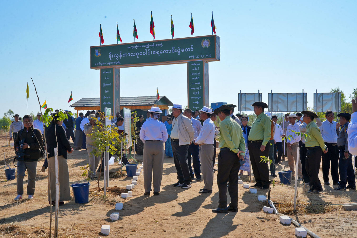 ဆက်လက်၍ တိုင်းဒေသကြီးဝန်ကြီးချုပ်၊ ဝန်ကြီးများနှင့် တာဝန်ရှိသူများ၊ လူမှုရေးအသင်း အဖွဲ့ဝင်များနှင့် ကျောင်းသား/သူများက အရိပ်ရအပင်များနှင့် လေကာတန်းပင် များအား ဓာတ်မြေ ဩဇာကျွေးခြင်း၊ ကောက်ရိုးခြောက်များဖုံးအုပ်၍ တစ်ပျော်တစ်ပါး ရေလောင်းခဲ့ကြရာ ဝန်ကြီးချုပ်နှင့် တာဝန်ရှိသူများက စိုက်ပျိုးပြီးသောသစ်ပင်များ ရေလောင်းပြုစုထိန်းသိမ်းနေမှုကို လှည့်လည် ကြည့်ရှု့ အားပေးခဲ့ကြောင်း သိရသည်။
