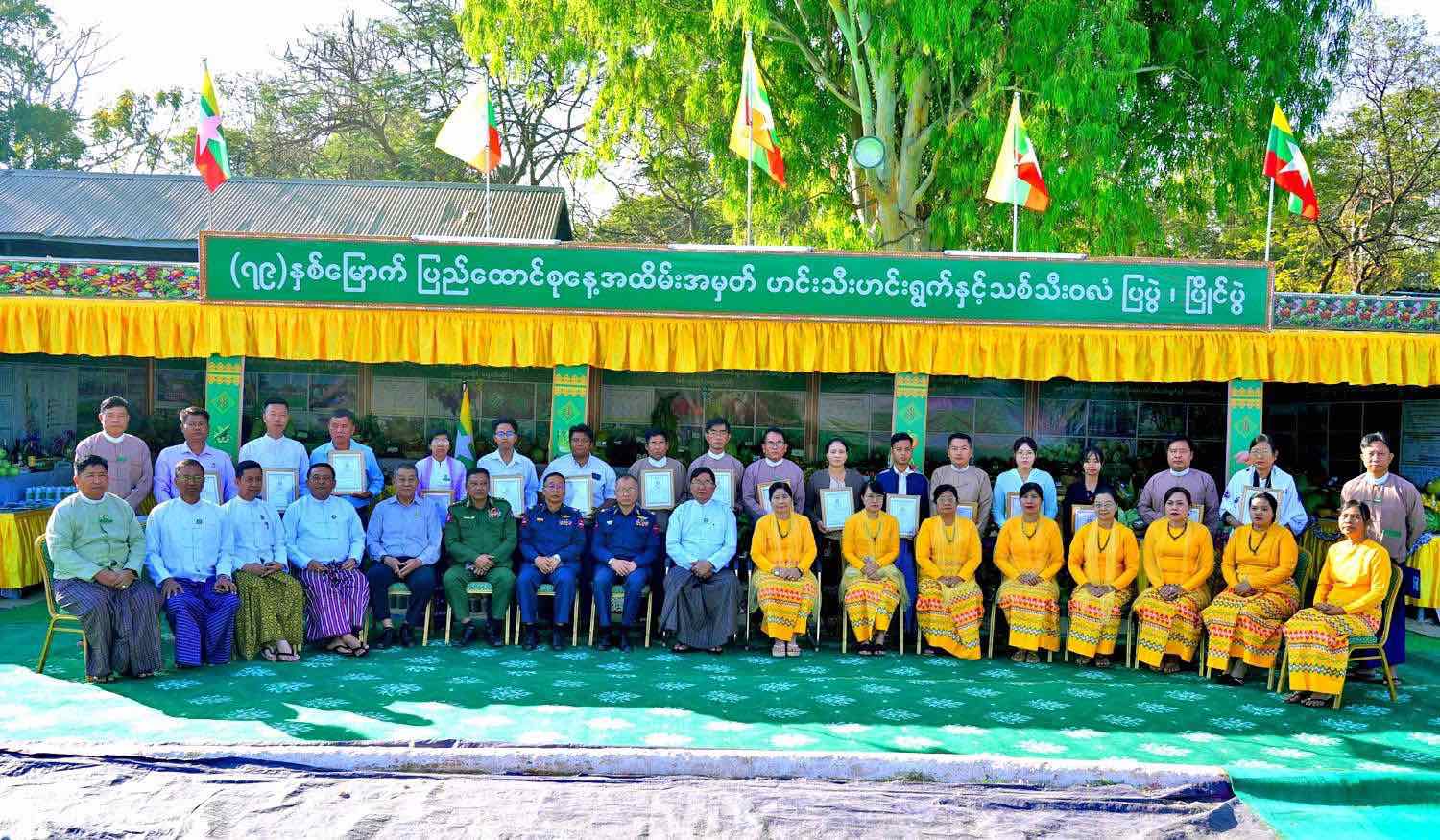 တိုင်းဒေသကြီးဝန်ကြီးချုပ်နှင့် တာဝန်ရှိသူများသည် မကွေးခရိုင်အားကစားကွင်းတွင် ခင်းကျင်းပြသထားသည့် (၇၉)နှစ်မြောက်ပြည်ထောင်စုနေ့ အထိမ်းအမှတ် ပြည်သူ့အကျိုးပြုပြ ခန်းများဖြစ်သည့် တိုင်းရင်းသားပြည်သူများ၏ ရိုးရာယဉ်ကျေးမှုပြခန်းများ၊ ဟင်းသီးဟင်းရွက် သစ်သီး ဝလံပန်းမန်ပြခန်းများ၊ ဒေသထွက်စားသောက်ကုန်များနှင့် လက်မှုအနုပညာပြခန်းများအား ကျောင်းသား၊ ကျောင်းသူများနှင့် ဒေသခံပြည်သူများ လာရောက်လေ့လာနေမှုကို ကြည့်ရှုအားပေးပြီး၊ (၇၉) နှစ်မြောက် ပြည်ထောင်စုနေ့အထိမ်းအမှတ် ဟင်းသီးဟင်းရွက် သစ်သီးဝလံ ပန်းမန်ပြပွဲ၊ သီချင်း ဆိုပြိုင်ပွဲ၊ စာစီစာကုန်း/ပန်းချီ/ကဗျာရွတ်ဆို ပြိုင်ပွဲများတွင် ပထမ၊ ဒုတိယ၊ တတိယနှင့် နှစ်သိမ့်ဆု ရရှိသူများအား တိုင်းဒေသကြီးဝန်ကြီးချုပ်နှင့် တာဝန်ရှိသူများက ဆုများအသီးသီး ပေးအပ်ချီးမြှင့် ခဲ့ကြောင်း သိရသည်။
