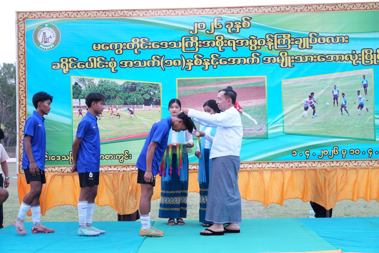 မြန်မာ့ဘောလုံးအားကစား ကျယ်ပြန့်စွာ တိုးတက်မြင့်မားရေးကို အထောက်အကူပြုစေရေး၊ မကွေးတိုင်းဒေသကြီးအတွင်းရှိ မြို့နယ်များမှ ဘောလုံးအားကစားသမားများအချင်းချင်း သွေးစည်း ညီညွတ်မှု စိတ်ဓာတ်နှင့် ပြည်ထောင်စုစိတ်ဓာတ်များ ပိုမိုထွန်းကားလာစေရေးနှင့် ထူးချွန်ထက် မြက်သည့် မျိုးဆက်သစ်အားကစားသမားများ ပေါ်ထွန်းလာစေရန်ရည်ရွယ်၍ ခရိုင်ပေါင်းစုံ အသက် (၁၈)နှစ်နှင့်အောက်အမျိုးသားဘောလုံးပြိုင်ပွဲ ဗိုလ်လုပွဲနှင့်ဆုပေးပွဲအခမ်းနားကို ဧပြီလ ၁၀ ရက်နေ့ ညနေ ၄ နာရီ က တိုင်းဒေသကြီးအားကစားကွင်း၌ ကျင်းပရာ တိုင်းဒေသကြီးဝန်ကြီးချုပ် ဦးတင်ကိုကို၊ နယ်မြေခံတပ်နယ်မှ အရာရှိကြီးများ၊ တိုင်းဒေသကြီးအစိုးရအဖွဲ့ဝင် ဝန်ကြီးများ၊ တိုင်း/ခရိုင်/ မြို့နယ်အဆင့် ဌာနဆိုင်ရာအကြီးအကဲများ၊ ရပ်မိရပ်ဖနှင့် လူငယ်မောင်မယ်များ၊ ဖိတ်ကြားထားသော အားကစား ဝါသနာရှင်များ၊ နည်းပြ၊ အုပ်ချုပ်သူများနှင့် ပြိုင်ပွဲဝင်အားကစား သမားများ တက်ရောက်ခဲ့ကြသည်။