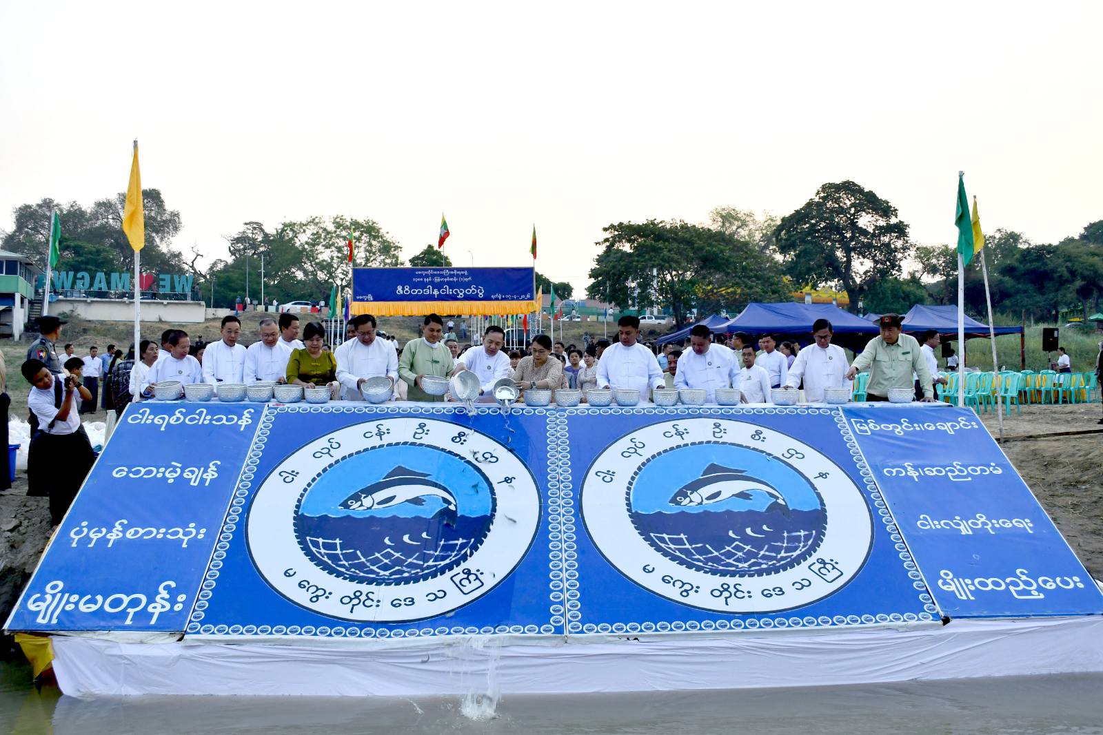 ဇီဝိတဒါန ဘေးမဲ့ငါးလွှတ်ပွဲတွင် တိုင်းဒေသကြီးဝန်ကြီးချုပ်ဦးတင်ကိုကို နှင့် ဇနီး၊ နယ်မြေခံ တပ်နယ်မှအရာရှိကြီးများ ၊ တိုင်းဒေသကြီးအစိုးရအဖွဲ့ဝင်ဝန်ကြီးများနှင့်ဇနီးများ၊ ငါးလုပ် ငန်းဦးစီး ဌာနမှတာဝန်ရှိသူများ၊ လူမှုရေးအသင်းအဖွဲ့များနှင့် ပြည်သူများက တိုင်းဒေသကြီးငါးလုပ်ငန်း ဦးစီးဌာန တောင်တွင်းကြီးမြို့နယ်၊ ပွင့်ဖြူမြို့နယ် နှင့် မြို့သစ်မြို့နယ်တို့မှ ငါးသားပေါက်စခန်းများ တွင်မွေးမြူထားသောငါးမြစ်ချင်းငါးသားပေါက်ကောင်ရေ(၁)သောင်း၊ ရွှေဝါငါးသားပေါက် ကောင်ရေ (၂)သောင်း၊ ငါးခုတ်မငါးသားပေါက်ကောင်ရေ(၂)သောင်း စုစုပေါင်းငါးသားပေါက် ကောင်ရေ(၅) သောင်းအား ဇီဝိတဒါန(အဘယဒါန) ဘေးမဲ့ငါးများကို ဧရာဝတီမြစ်အတွင်း လွှတ်ပေးခဲ့ကြကြောင်း သိရသည်။