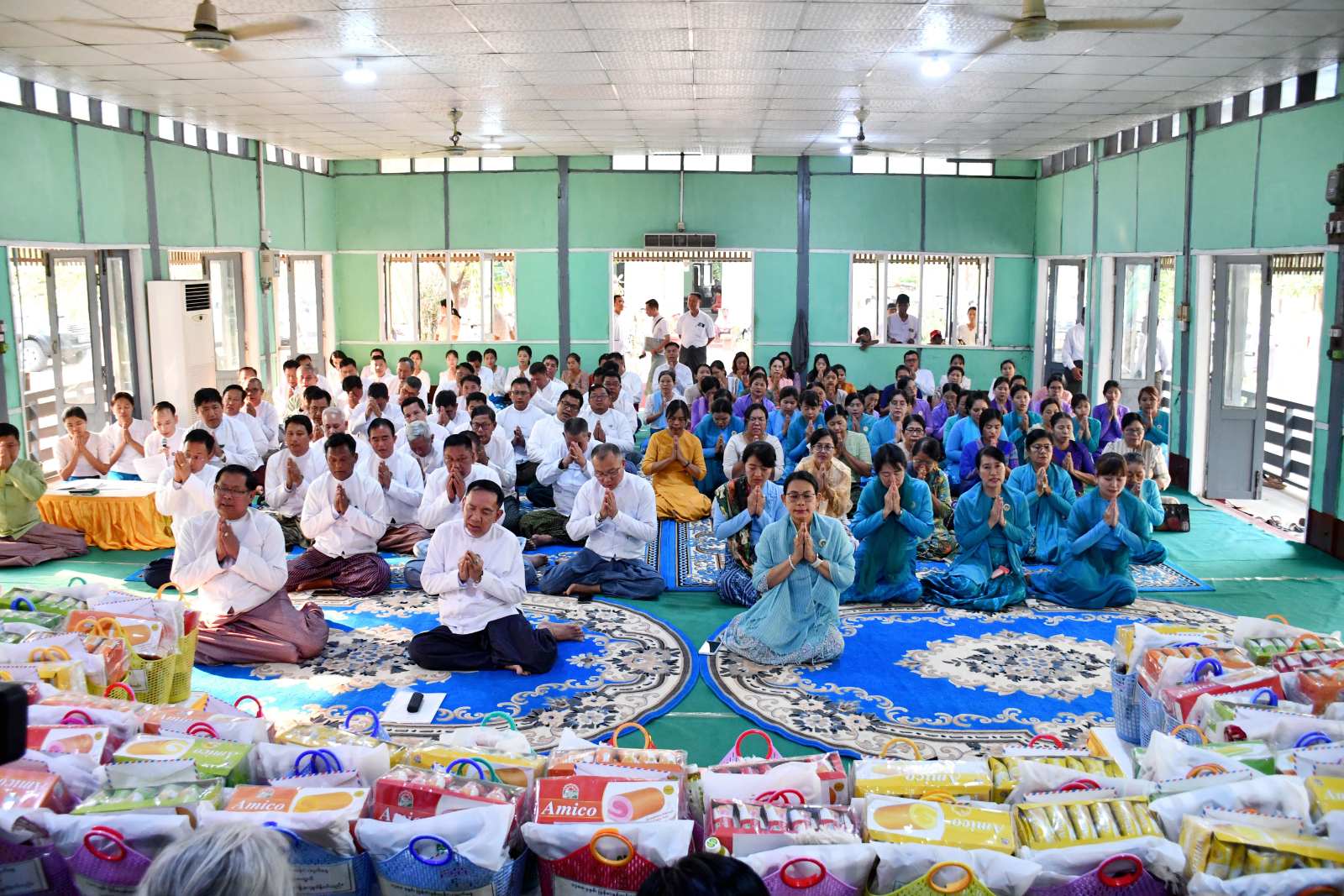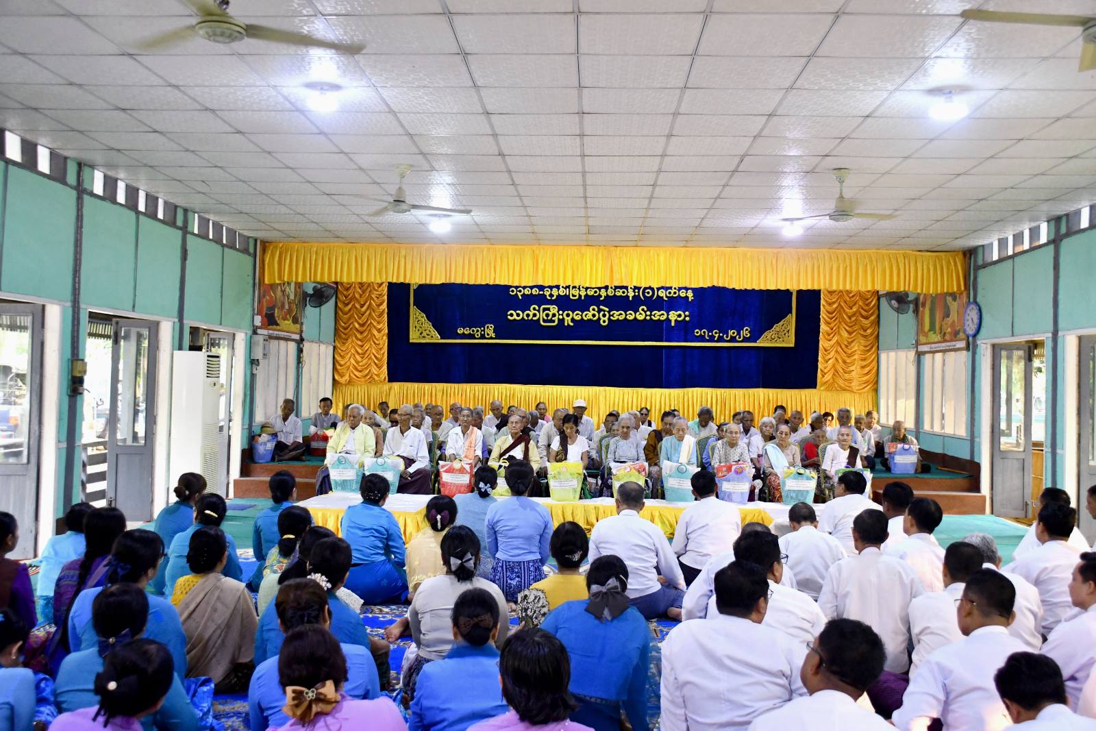ဦးစွာအခမ်းနားကို “နမောတဿ” သုံးကြိမ်ရွတ်ဆိုဘုရားကန်တော့၍ဖွင့်လှစ်ခဲ့ကာ ဘုရား၊ တရား၊ သံဃာ ရတနာမြတ်သုံးပါးဦးထိတ်ထား၍ သက်ကြီးဘိုးဘွားများအားရှင်ခိုးကန်တော့ခဲ့ကြပြီး တိုင်းဒေသကြီးဝန်ကြီးချုပ်နှင့် ဇနီး၊ တိုင်းဒေသကြီးလွှတ်တော် ဥက္ကဌ ၊ တိုင်းဒေသကြီးအစိုးရအဖွဲ့ဝင် ဝန်ကြီးများနှင့် တာဝန်ရှိသူများက မကွေးမြို့ပေါ်နှင့်ဖန်ခါးမြေဘိုးဘွားရိပ်သာမှ အသက်(၈၅)နှစ် နှင့်အထက် သက်ကြီးဘိုးဘွား စုစုပေါင်း ၆၅ ဦးအတွက် တိုင်းဒေသကြီးအစိုးရအဖွဲ့၊ ဌာနဆိုင်ရာများ၊ မိခင်နှင့်ကလေးစောင့်ရှောက်မှုကြီးကြပ်ရေးအဖွဲ့နှင့် အမျိုးသမီးရေးရာအဖွဲ့ တို့က စုစုပေါင်း လှူဒါန်း ငွေကျပ် ၆၄ သိန်းကျော်တန်ဖိုးရှိ အလှူငွေနှင့် လှူဖွယ်ပစ္စည်းများအား လှူဒါန်းပေးအပ်ကန်တော့ ကြပြီး အဘိုး၊ အဘွားများကိုယ်စား သက်ကြီးအဘိုးတစ်ဦးက ဆုတောင်းမေတ္တာ ပြန်လည်ပို့သပေးခဲ့ ပြီး “ဗုဒ္ဓသာသနံ စိရံ တိဌတု” သုံးကြိမ်ရွတ်ဆိုဆုတောင်း၍ အခမ်းနားကိုရုပ်သိမ်းခဲ့ကြောင်း သိရသည်။