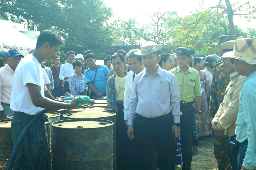ထို့နောက် မကွေးတိုင်းဒေသကြီး ဝန်ကြီးချုပ် ဦးတင်ကိုကို သည် တိုင်းဒေသကြီးအစိုးရ အဖွဲ့ဝင် ဝန်ကြီးများ ၊ တိုင်းဒေသကြီး ၊ ခရိုင်နှင့် မြို့နယ်အဆင့် ဌာနဆိုင်ရာတာဝန်ရှိသူများနှင့် အတူ ပွင့်ဖြူမြို့နယ်အတွင်း လေပြင်းတိုက်ခတ် မှုကြောင့် ထိခိုက်ပျက်စီးမှုအခြေအနေများနှင့် ရှင်းလင်းရေး လုပ်ငန်းများ ဆောင်ရွက်နေမှုများ၊ ဒေသခံတောင်သူများ နွေစပါးနှင့် ဆီထွက်သီးနှံ စိုက်ပျိုးနိုင်ရေး အတွက် ပြည်တွင်းထုတ် ဒီဇယ်ဆီများ လယ်ယာလုပ်ငန်းခွင်အရောက် အထူးသက်သာသော ဈေးနှုန်း ဖြင့် တိုက်ရိုက်ဖြန့်ဖြူးရောင်းချပေးနေမှုများကို လှည့်လည်ကြည့်ရှုအားပေးကာ လိုအပ်သည်များကို သက်ဆိုင်ရာစပ်ဆက်ဌာနများနှင့် ပေါင်းစပ်ညှိနှိုင်း ဆောင်ရွက်ပေးခဲ့ကြောင်း သိရသည်။