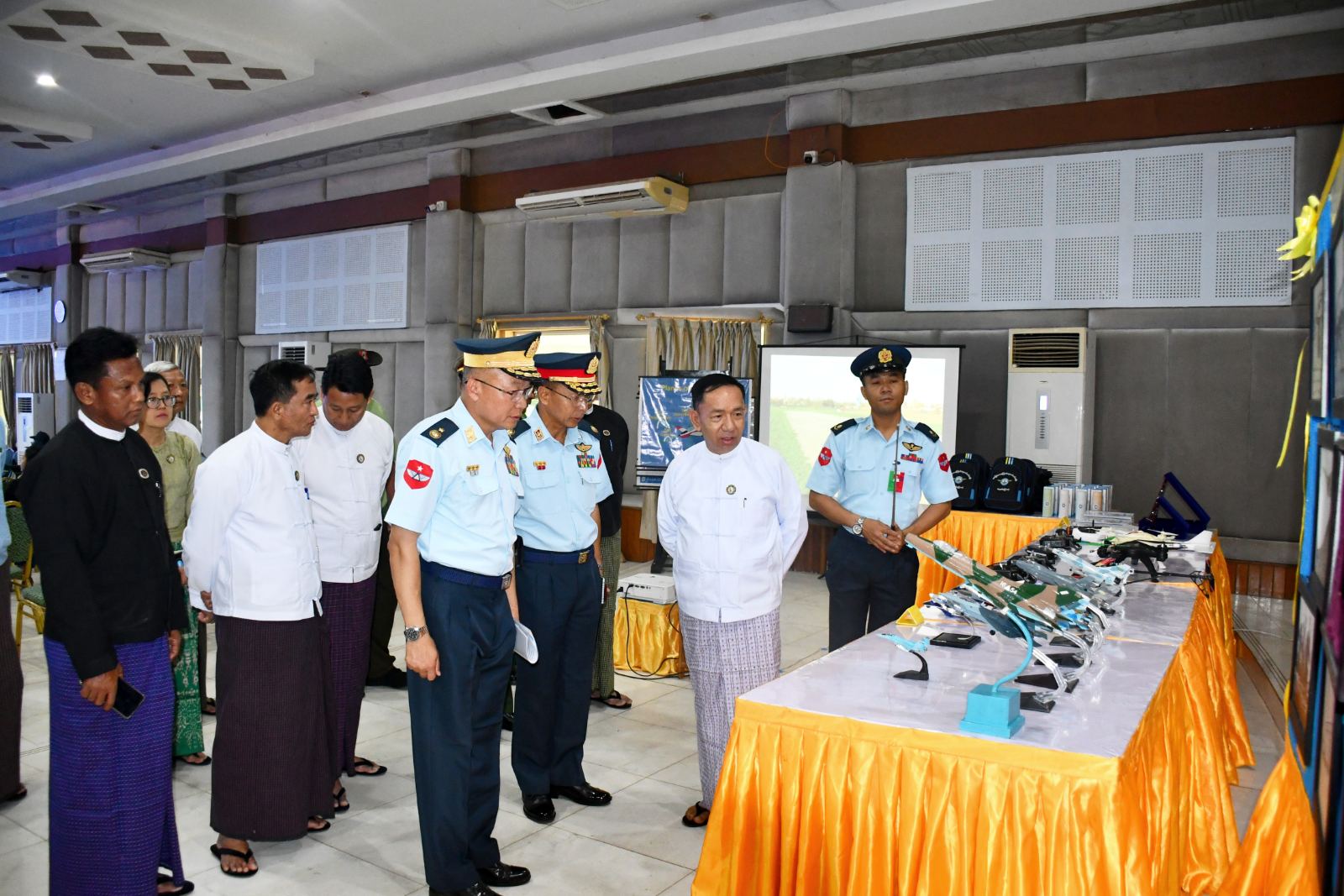 ထို့နောက် တိုင်းဒေသကြီးဝန်ကြီးချုပ် နှင့် တာဝန်ရှိသူများသည် သင်တန်းတွင်အသုံပြုမည့် သင်ကြားမှု၊ သင်ယူမှုထောက်ကူပစ္စည်းများ နှင့် လေကြောင်းဆိုင်ရာ သမိုင်းမှတ်တမ်းဓာတ်ပုံများ ခင်းကျင်းပြသထားမှု အားလေ့လာကြည့်ရှုခဲ့ကြကြောင်းသိရသည်။