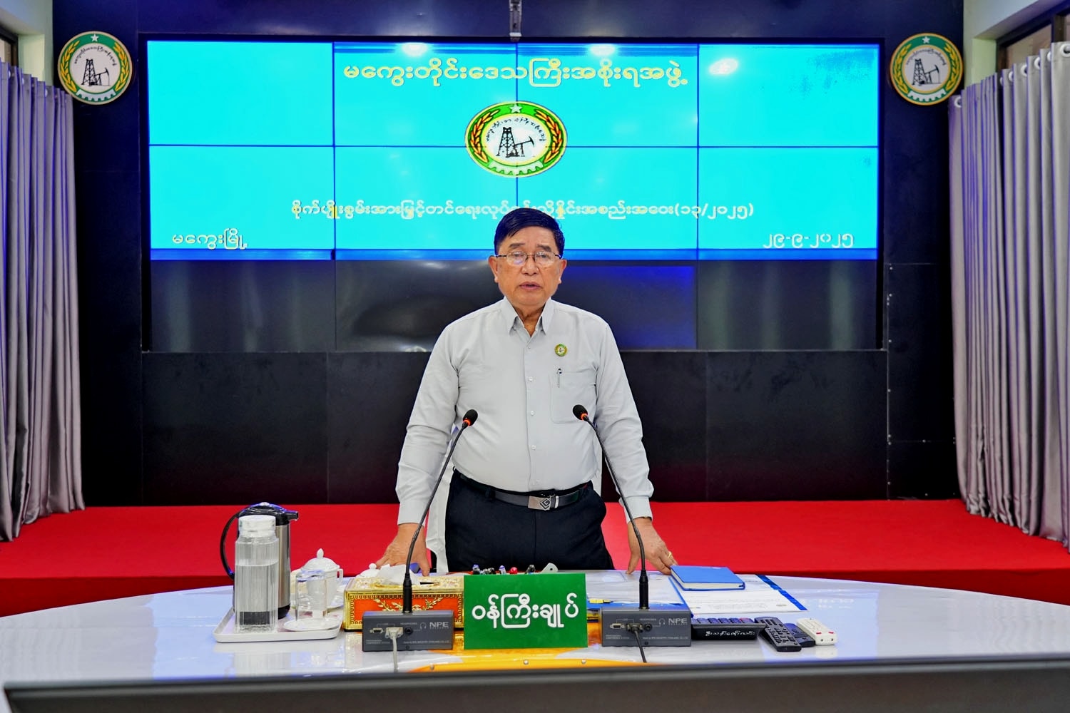ထိုနောက် တိုင်းဒေသကြီးစိုက်ပျိုးရေးဦးစီးမှူးနှင့် တိုင်းဒေသကြီး လယ်ယာမြေစီမံခန့်ခွဲရေး နှင့် စာရင်းအင်းဦးစီးမှူးတို့က မိမိတို့ လုပ်ငန်းကဏ္ဍအလိုက် ရှင်လင်းတင်ပြ တင်ပြခဲ့ပြီး၊ ဆည်မြောင်း နှင့်ရေအသုံးချမှုစီမံခန့်ခွဲရေးဦးစီးဌာန ညွှန်ကြားရေးမှူးက မကွေးတိုင်းဒေသကြီး၊ နတ်မောက်မြို့နယ် အတွင်းရှိ စီးဆင်းလျှက်ရှိသော ယင်းချောင်း၏ လက်ဝဲဘက်ခြမ်းတွင် ဌာနမှ ထိန်းသိမ်းထားသော နတ်မောက်ရေလှောင်တမံ၊ ပင်းကန်တို့တည်ရှိပြီး အဆိုပါ ဆည်၊ ကန်၊ တမံများနှင့် ရေဆင်း ဧရိယာ များတွင် (၂၈-၉-၂၀၂၅)နေ့၌ ပုံမှန်မိုးရေချိန်သာ ရွာသွန်းခဲ့သော်လည်း ယင်းချောင်း၏ လက်ယာဘက် ခြမ်းမှ ယင်းချောင်းအတွင်း စီးဝင်သော ကျွဲမကျချောင်း၊ ဝါးခုတ်ချောင်း၊ ရေယိုချောင်းတို့၏ ရေဆင်း ဧရိယာများတွင် မုန်တိုင်းအရှိန်ဖြင့် မိုးသည်းထန်စွာရွာသွန်းခဲ့မှုကြောင့် ယင်းချောင်းအတွင်း စီးဝင်ရေ များပြားခဲ့ကြောင်း၊ ထိုသို့ယင်းချောင်းအတွင်း စီးဝင်ရေများပြားမှုကြောင့် နတ်မောက် မြို့နယ်၏ အနိမ့်ပိုင်း ရပ်ကွက်(၂)ခုတွင် ရေကြီးနစ်မြုပ်မှုဖြစ်ပေါ်ခဲ့ခြင်းဖြစ်ပါကြောင်း၊ ကျေးရွာမှ ထိန်းသိမ်း ထားသော မဲဇလီကျေးရွာအနီးရှိ အောင်ပန်းကျွန်းကန်မှာ ကျွဲမကျချောင်းအတွင်း စီးဝင်သော ချောင်းငယ်ပေါ်တွင် တည်ဆောက်ထားသော မြေသားကန်ငယ် တစ်ခုဖြစ်ပြီး ၎င်းကန် အတွင်းသို့ သိုလှောင် ထိန်းသိမ်းနိုင်သည့် ပမာဏထက် အဆမတန်များပြားသည့် စီးဝင်ရေများကြောင့် ကျိုးပေါက်ခဲ့ခြင်း ဖြစ်ပါကြောင်း၊ ၂၈-၉-၂၀၂၅ ရက်နေ့တွင် ယင်းချောင်းအတွင်းစီးဝင်သော ဌာနမှ ထိန်းသိမ်းထားသည့် နတ်မောက်ရေလှောင်တမံ ရေပိုလွှဲနှင့် ပင်းကန်ရေပိုလွှဲများမှ ရေကျော်စီးဆင်းမှု မရှိခဲ့ပါကြောင်းနှင့် ဆည်၊ ကန်၊ တမံများ၏ ကြံ့ခိုင်မှုအခြေအနေမှာ ကောင်းမွန်လျှက်ရှိပါကြောင်း၊ လက်ရှိအခြေအနေတွင် ယင်းချောင်းအတွင်း ပုံမှန်ရေစီးဆင်းမှုသာ ရှိနေပါကြောင်းနှင့် ခရိုင်စီမံအုပ်ချုပ်ရေးအဖွဲ့ တာဝန်ရှိသူများနှင့် တက်ရောက်လာသူများ၏ စိုက်ပျိုးရေး၊ မွေးမြူရေး ကဏ္ဍအထွေထွေဆွေးနွေး တင်ပြဆောင်ရွက်ခဲ့မှုများအပေါ် တိုင်းဒေသကြီးဝန်ကြီးချုပ်က လိုအပ် သည်များကို ဆက်စပ်ဌာနများနှင့် ပေါင်းစပ် ညှိနှိုင်း ဖြည့်ဆည်း ဆောင်ရွက်ခဲ့ကြောင်း သိရသည်။