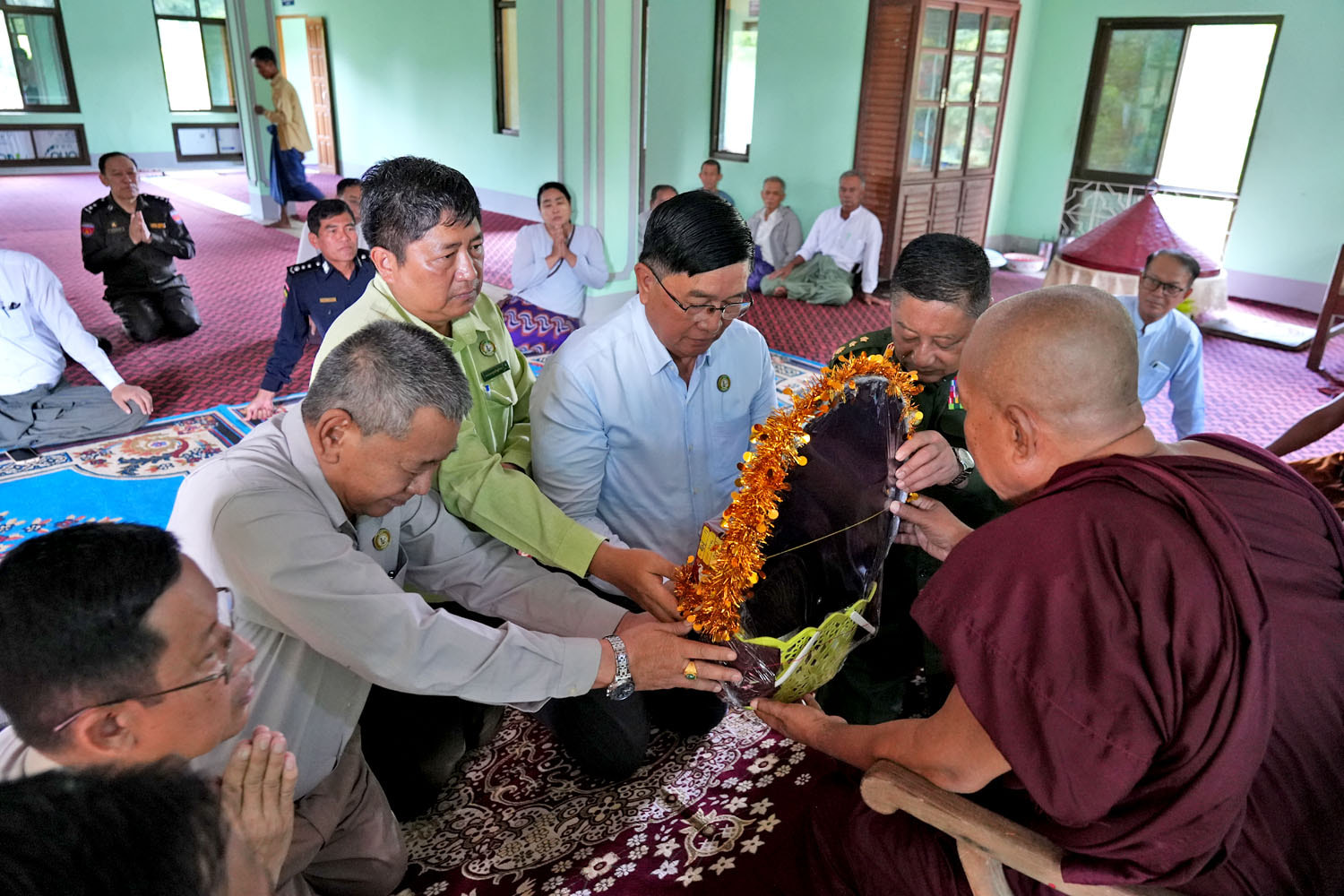 ဆက်လက်၍ တိုင်းဒေသကြီးဝန်ကြီးချုပ်နှင့် တာဝန်ရှိသူများသည် ရေတွင်းကုန်းကျေးရွာရှိ ဓမ္မဝိဟာရ ဘုန်းတော်ကြီးကျောင်းသို့ ရောက်ရှိပြီး၊ ကျောင်းထိုင်ဆရာတော်ကြီးအား ဖူးမျှော်ကြည်ညို ကာ လှူဖွယ်ဝတ္ထုပစ္စည်းများ ဆက်ကပ်လှူဒါန်းခဲ့သည်။