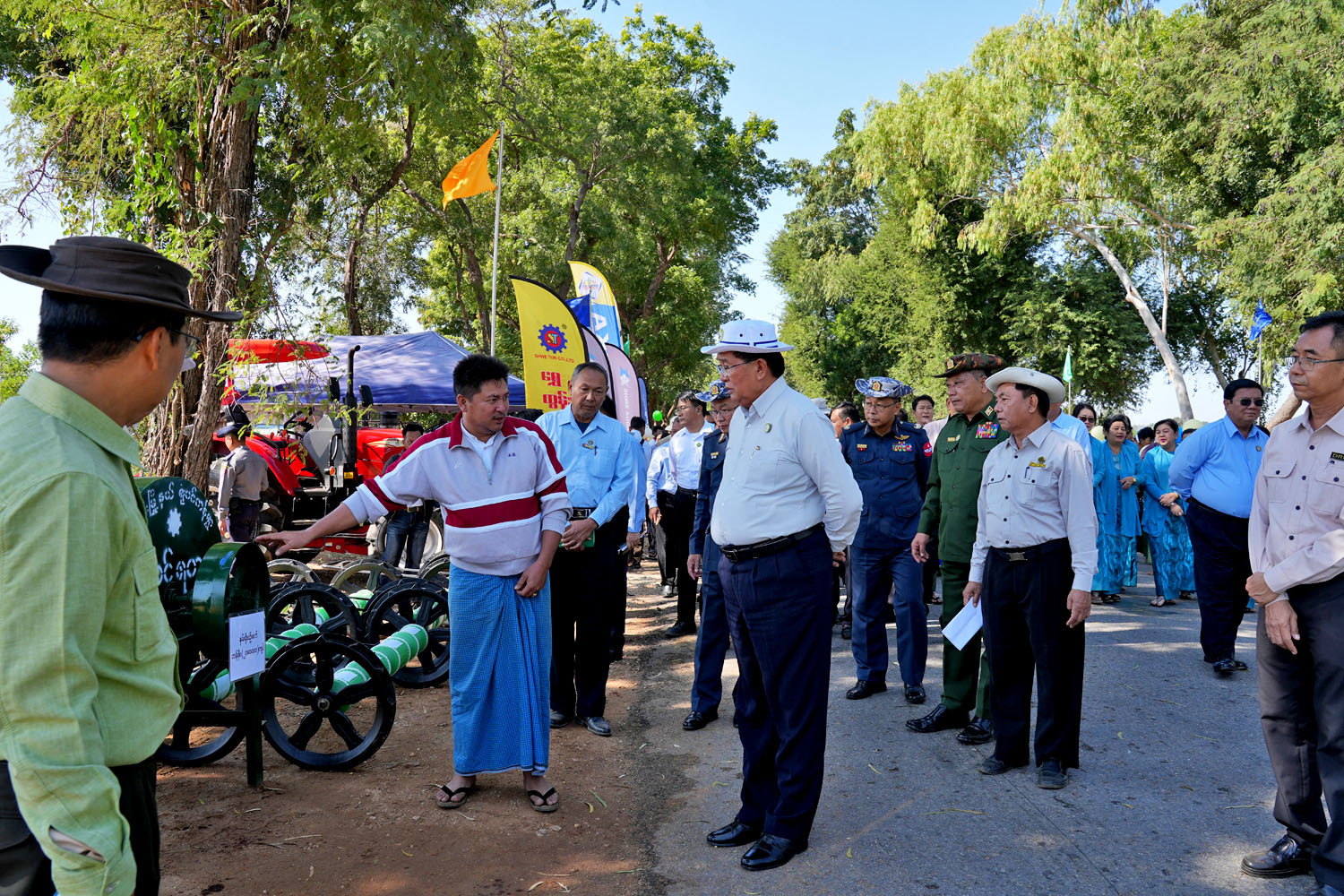 မကွေးတိုင်းဒေသကြီး မကွေးမြို့နယ်၊ ရှားပင်လှကျေးရွာအုပ်စု “ ရွှေတင့်တူး” စိုက်ပျိုးမွေးမြူ ရေးဇုန် ဖွင့်ပွဲအခမ်းအနားကို ယနေ့နံနက်ပိုင်းက ကျင်းပရာ မကွေးတိုင်းဒေသကြီး ဝန်ကြီးချုပ် ဦးတင့်လွင်၊ နယ်မြေခံတပ်နယ်မှ တပ်မတော်အရာရှိကြီးများ၊ တိုင်းဒေသကြီး တရားလွှတ်တော် တရားသူကြီးချုပ်၊ တိုင်းဒေသကြီးအစိုးရအဖွဲ့ဝင် ဝန်ကြီးများ၊ တိုင်း၊ ခရိုင်၊ မြို့နယ်အဆင့် ဌာနဆိုင်ရာ တာဝန်ရှိသူများ၊ ဖိတ်ကြားထားသည့် ဧည့်သည်တော်များ တက်ရောက်ခဲ့ကြသည်။