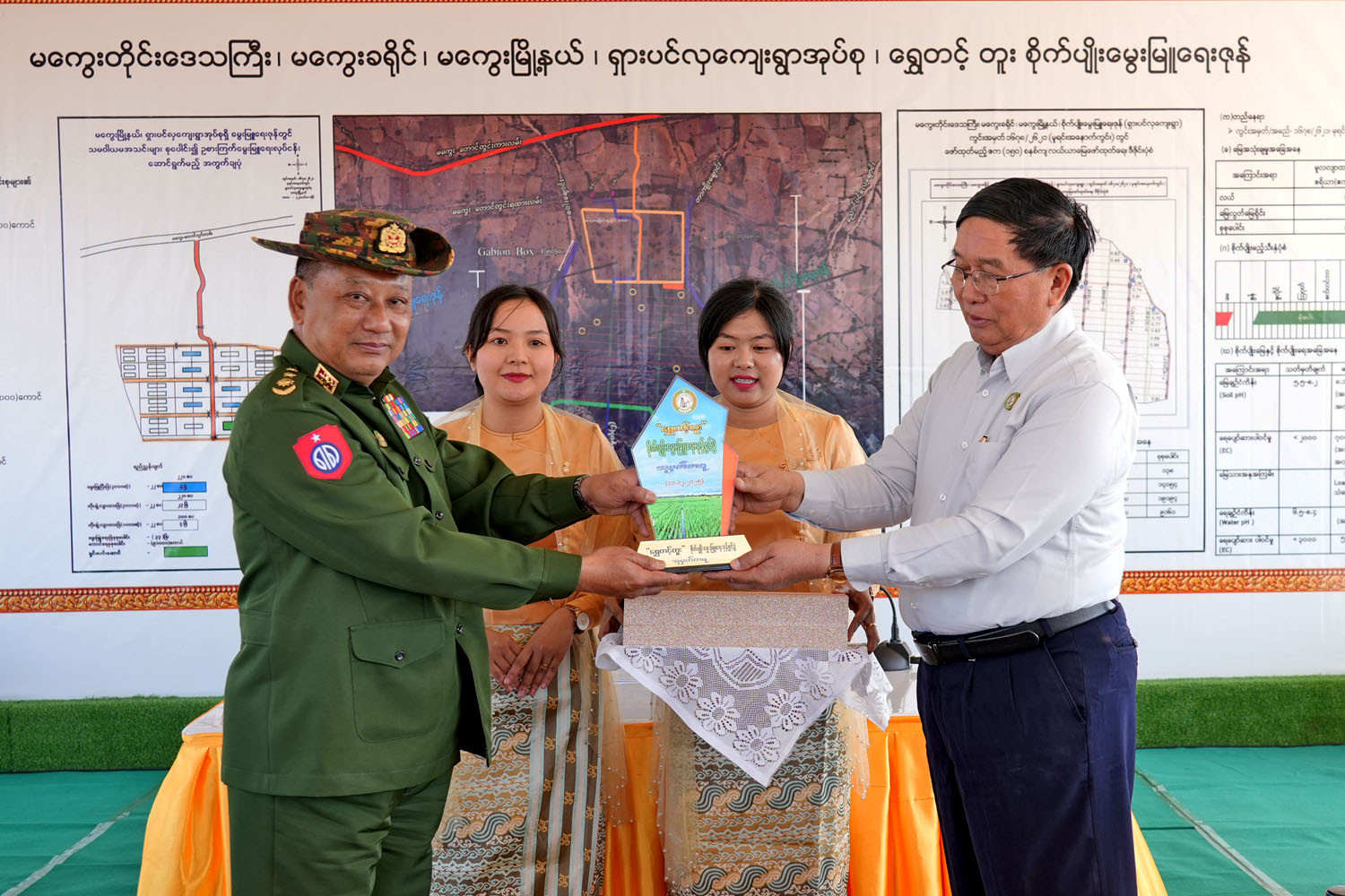 ဆက်လက်ပြီး ဖွင့်ပွဲအထိမ်းအမှတ် အခမ်းအနားကို ကျင်းပရာ တိုင်းဒေသကြီးဝန်ကြီးချုပ်က အမှာစကား ပြောကြားရာတွင် မကွေးခရိုင်၊ မကွေးမြို့နယ်၊ ရှားပင်လှ ကျေးရွာအုပ်စုအတွင်း (၁၀)နှစ်ကျော် သီးနှံစိုက်ပျိုးခြင်းမပြုဘဲ မြေလွတ်မြေရိုင်းပုံစံဖြစ်နေသည့် မြေဧရိယာများကို စနစ်ကျ လယ်ယာမြေ ဖော်ထုတ်ဆောင်ရွက်ခဲ့ကြောင်း ယခုအခါ “ရွှေတင့်တူး” စိုက်ပျိုးမွှေးမြူရေးဇုန် ပထမ အဆင့်(၁၅၁.၅၈)ဧက ဖော်ထုတ်လျက်ရှိပြီး ထပ်မံတိုးချဲ့လျာထား(၂၀၆.၆၂)ဧက စုစုပေါင်း(၃၅၈.၂၀) ဧက ဖော်ထုတ်စိုက်ပျိုးသွားမှာ ဖြစ်ကြောင်း စနစ်တကျ လယ်ယာမြေ ဖော်ထုတ်ခြင်းအားဖြင့် စက်စွမ်း အားပြည့် အသုံးပြုနိုင်ရန် လုံလောက်သည့် အကျယ်အဝန်းရှိခြင်း၊ ညီညာပြန့်ဖြူးခြင်း၊ ထောင်မှန် စတုဂံပုံရှိပြီး အလျားအနံအချိုး(၃:၁)ဖြစ်ခြင်း၊ ကုန်ထုတ်လမ်းပါရှိခြင်း၊ ရေသွင်းရေနုတ် မြောင်းပါရှိခြင်း၊ ကန်သင်းများကောင်းမွန်ခြင်းစသည့် အင်္ဂါရပ်များ နှင့်ပြည့်စုံပြီး ကုန်ထုတ်လုပ်မှု စရိတ် လျော့ချနိုင်ကာ သီးနှံအထွက်တိုးစေပြီး အလေအလွှင့်နည်းပါးသည့်အတွက် သာမာရိုးကျ လယ်ယာမြေတွင် စိုက်ပျိုးသည့် သီးနှံများထက် အမြတ်အစွန်း ပိုမိုရရှိစေမှာဖြစ်ကြောင်း ၂၀၂၅-၂၀၂၆ ခုနှစ်တွင် မိုးစပါးစိုက်ပျိုး ထားရှိမှု အနေဖြင့် အောင်နိုင်တိုးစပါးမျိုး(၁၈.၂၅)ဧက စတင်စိုက်ပျိုး အောင်မြင် ဖြစ်ထွန်းနေတာ တွေ့ရှိရမှာဖြစ်ကြောင်း၊ သီးထပ်စွမ်းအား တိုးတက်လာစေရေးအတွက် တစ်နှစ်လျှင် ၃ သီးရအောင် စိုက်ပျိုးပြီး သီးနှံစိုက်စွမ်းအား ၃၀၀ ရာခိုင်နှုန်းရရှိရေး ကြိုးပမ်း ဆောင်ရွက်သွားရန် လုပ်ပိုင်ခွင့်ရ တောင်သူများ၊ လုပ်ငန်းရှင်များ၊ ဌာနဝန်ထမ်းများအား အထူးတိုက် တွန်းမှာကြားလိုကြောင်း၊ ထို့ပြင် မွေးမြူရေးလုပ်ငန်းများနှင့် ပတ်သက်၍ ကျေးလက်နေပြည်သူ များ၏ စီးပွားရေး ဖွံ့ဖြိုး တိုးတက်စေရန် တစ်ပိုင်တစ်နိုင် မွေးမြူရေးမှ စီးပွားဖြစ်တိုးချဲ့ မွေးမြူနိုင်ရေး၊ ဒေသဝမ်းစာဖူလုံရေး အတွက် လျာထား ဆောင်ရွက်ခဲ့ကြောင်း ဒေသအတွင်း အသား၊ ဥထုတ်လုပ်မှု၊ စားသုံးမှု ဖူလုံပြီး ပိုလျှံသည်များကို တင်ပို့နိုင်စေရန်အတွက် မွေးမြူရေးလုပ်ငန်းများ ဖွံ့ဖြိုးတိုးတက် လာစေရန် ဒေသအလိုက် အလားအလာ ရှိသော တိရိစ္ဆာန်အမျိုးအစားများအလိုက် စံပြပုဂ္ဂလိက မွေးမြူရေးလုပ်ငန်းအဖြစ် တိုးချဲ့မွေးမြူ ထုတ်လုပ်နိုင်စေရန် စီမံချက်များ ရေးဆွဲဆောင်ရွက် ခဲ့ကြောင်း၊ ဥစားကြက် မွေးမြူရေးလုပ်ငန်းများ ဖွံ့ဖြိုးတိုးတက်စေရေးအတွက် နိုင်ငံတော်အကြီး အကဲ၏ လမ်းညွှန်မှာကြားချက်အရ မကွေးခရိုင်၊ မကွေးမြို့နယ်၊ ရှားပင်လှကျေးရွာအုပ်စုအတွင်းရှိ သမဝါယမအသင်းပိုင် မြေဧရိယာ(၄၈.၀၆)ဧကတွင် ဥစားကြက်မွေးမြူ