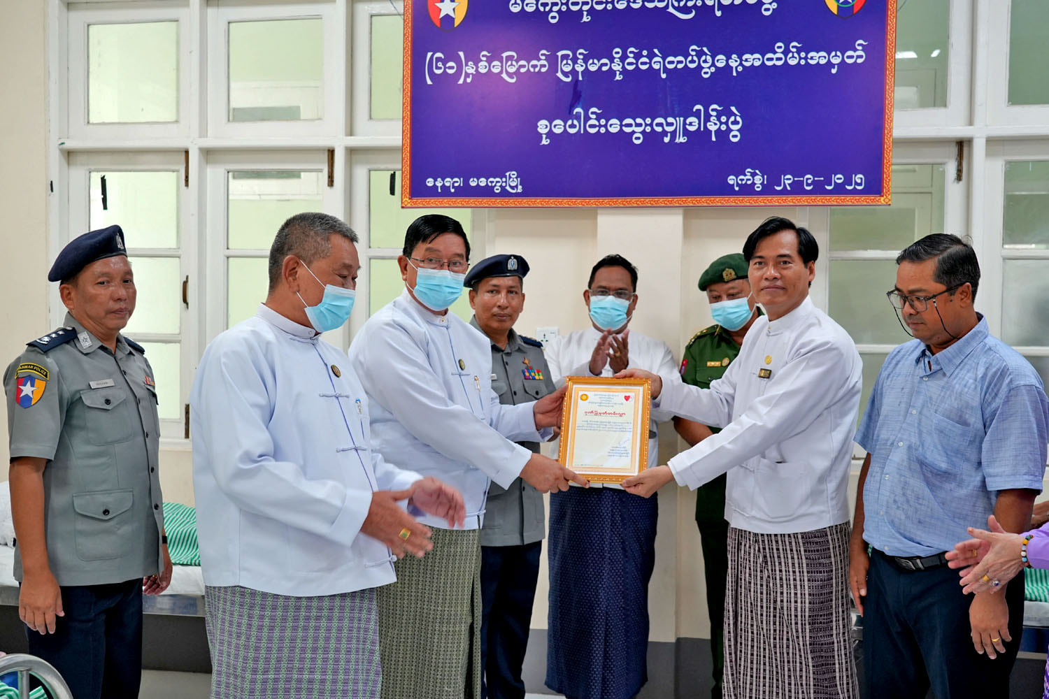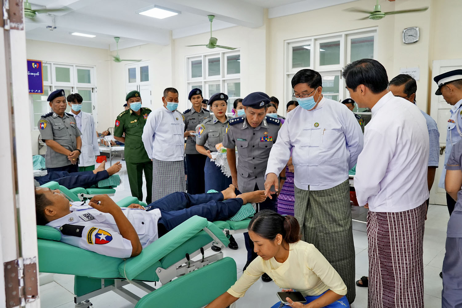 မကွေးတိုင်းဒေသကြီး တိုင်းပြည်သူ့ဆေးရုံကြီး အမျိုးသားသွေးလှူဘဏ်ခွဲမှ စေတနာ သွေးသန့် သွေးလှူရှင်များကို ဂုဏ်ပြုကြိုဆိုလျက်ရှိရာ (၆၁)နှစ်မြောက် မြန်မာနိုင်ငံရဲတပ်ဖွဲ့နေ့ကို ကြိုဆိုဂုဏ်ပြု သောအားဖြင့် မကွေးတိုင်းဒေသကြီး ရဲတပ်ဖွဲ့မှူး ရဲမှူးကြီးကျော်စိုးဝင်း ဦးဆောင်သော တိုင်းဒေသကြီး၊ ခရိုင်၊ မြို့နယ်ရဲတပ်ဖွဲ့ဝင်များနှင့် ယာဉ်ထိန်းရဲတပ်ဖွဲ့ဝင်များမှ စုပေါင်း၍ တိုင်းဒေသကြီး ပြည်သူ့ဆေးရုံ ကြီး(၅)ထပ်ဆောင် သွေးလှူဘဏ်တွင် စုပေါင်းသွေးလှူဒါန်းခြင်း ဆောင်ရွက်နေမှုကို တိုင်းဒေသကြီး အစိုးရအဖွဲ့ ဝန်ကြီးချုပ် ဦးတင့်လွင်နှင့် အဖွဲ့ဝင် ဝန်ကြီးများနှင့် ဇနီးများ၊ မကွေးတပ်နယ်မှ အကြီး အကဲများ သွားရောက်၍ ကြည့်ရှုအားပေးကာ သွေးလှူဒါန်းသော ရဲတပ်ဖွဲ့ဝင်များအား အာဟာရ ဖြည့်စွက် အစားအစာများ ထောက်ပံ့ပေးခဲ့သည်။